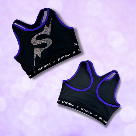Sports Bra - Pro Cheer High Neck Racerback 'S' Rhinestone - Purple Or Black NEW
